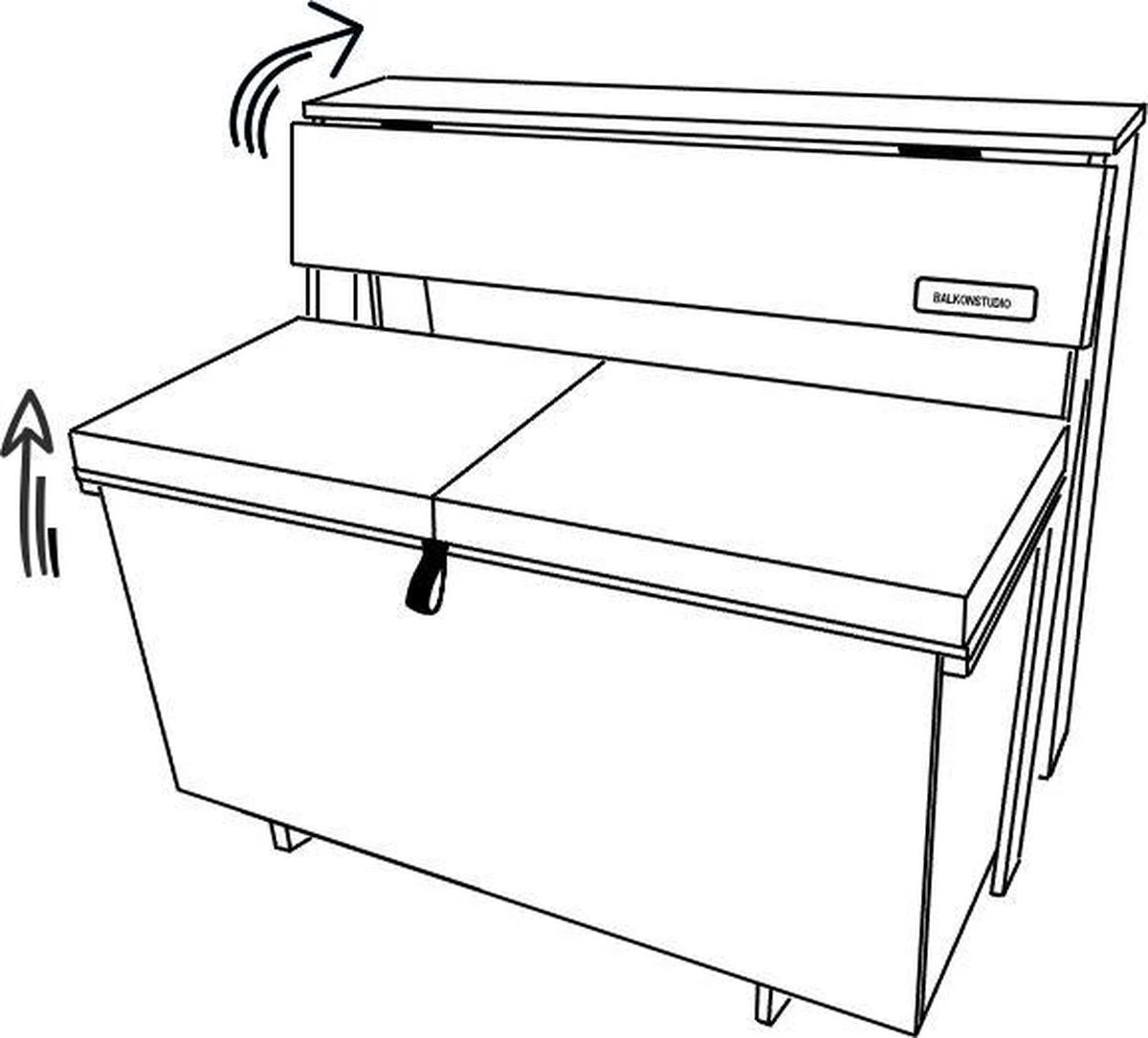 Balkonset 3in1: Bank | Tafel | Opbergruimte. Hout, Medium 95cm.
