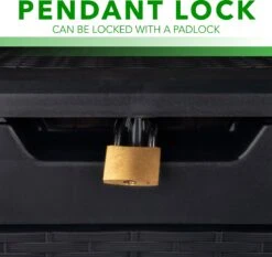 De kussenbox is UV-bestendig en weersbestenig en heeft een volume van 310 liter, hierdoor heb je voldoende ruimte om jouw tuinkussens snel en eenvoudig op te bergen. De opbergkist kan dankzij de wielen en de 3 handgrepen gemakkelijk verplaatst worden. De box is door hulp van het klik-systeem zeer eenvoudig te monteren.